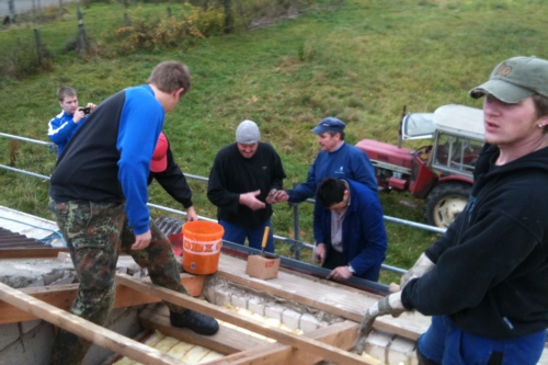 | Unter der fachmännischen Anleitung von Berthold Förster und der tatkräftigen Unterstützung von 20 Feuerwehrkameraden, die mehr als 230 Arbeitsstunden leisteten, wurde am 06. & 13. November 2010 das Dach des Feuerwehrhauses isoliert und neu gedeckt. Die Sanierungkosten beliefen sich auf etwa 8000,-- €. |