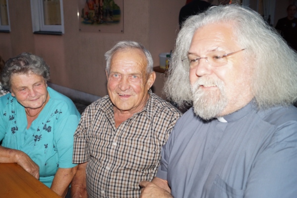Der monatliche Dämmeschoppen der FFW Geschwand am 23. Juli 2015 stand ganz im Zeichen des Besuches von Pfarrer Peter König. Der Straubinger Stadtpfarrer pflegt eine jahrzehtelange Freundschaft mit einer Geschwander Familie und besucht auch immer wieder mal Geschwand. Bei seinem letzten Besuch am 23. Juli 2015 zeleprierte Pfarrer König einen Gottesdienst in der Geschwander Filialkiche "Mariä Himmelfahrt". Zuvor weihte er noch drei neue Fahrzeuge. Beim anschließenden Dämmerschoppen am Feuerwehrhaus suchten und fanden die Geschwander und Lindner Bürger bei herrlichem Sommerwetter das Gespräch mit Pfarrer König, der vor kurzem sein 30-jähriges Priesterjubiläum feierte.