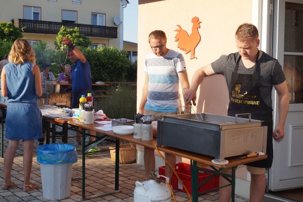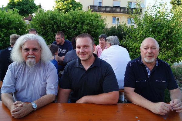 Der monatliche Dämmerschoppen der FFW Geschwand am 19. Juli 2018 stand ganz im Zeichen des Besuches von Pfarrer Peter König. Der ehemalige Straubinger Stadtpfarrer und jetzige Stadtpfarrer von Vilsbiburg pflegt eine jahrzehtelange Freundschaft mit einer Geschwander Familie und besucht auch immer wieder mal Geschwand. Bei seinem letzten Besuch am 19. Juli 2018 segnete Pfarrer König vier neue Fahrzeuge und zelebrierte einen Gottesdienst in der Geschwander Filialkiche "Mariä Himmelfahrt". Beim anschließenden Dämmerschoppen am Feuerwehrhaus suchten und fanden die Geschwander und Lindner Bürger bei Gegrilltem und frischem Bier das Gespräch mit Pfarrer König, der am 08. September 2016 von Straubing in die Pfarrei "Mariä Himmelfahrt" nach Vilsbiburg wechselte.