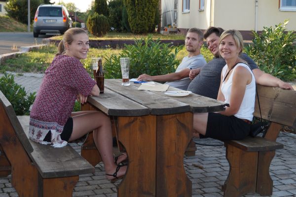 Frohgelaunte Gäste zur fortgeschritten Stunde