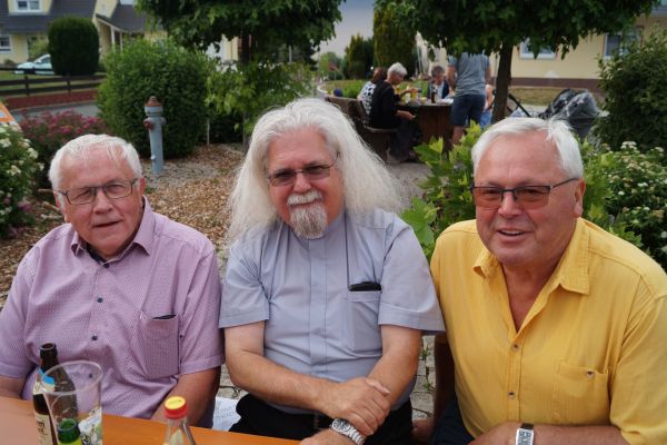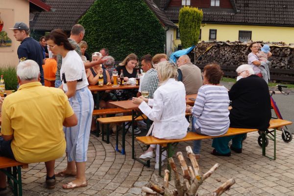 Der monatliche Dämmerschoppen der FFW Geschwand am 14. Juli 2022 stand ganz im Zeichen des Besuches von Pfarrer Peter König. Der ehemalige Straubinger Stadtpfarrer und jetzige Stadtpfarrer von Vilsbiburg pflegt eine jahrzehtelange Freundschaft mit einer Geschwander Familie und besucht auch immer wieder mal Geschwand. Bei seinem diesjährigen Besuch zelebrierte Pfarrer König einen Gottesdienst in der Geschwander Filialkiche "Mariä Himmelfahrt". Beim anschließenden Dämmerschoppen am Feuerwehrhaus suchten und fanden die Geschwander und Lindner Bürger bei Gegrilltem und frischem Bier das Gespräch mit Pfarrer König, der bereits zum 25sten Mal Geschwand besuchte.