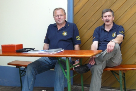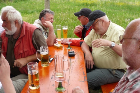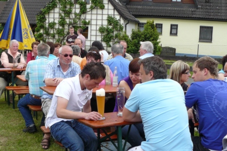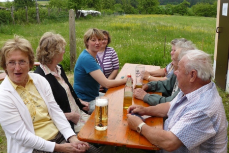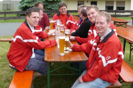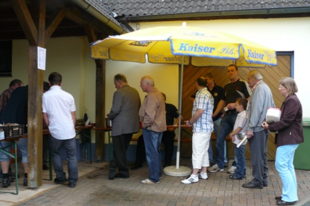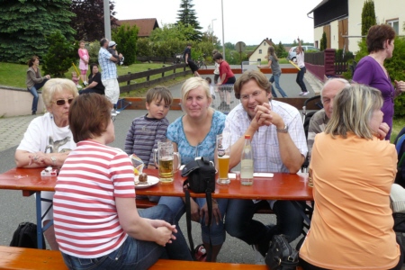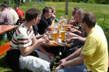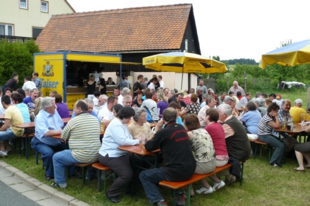 | Am 21. Mai 2009 hielt die FFW Geschwand bei anfangs sonnigen Wetter, einem kurzen Schauer um die Mittagszeit, einem sehr sonnigen Nachmittag und einen abkühlenden Schauer gegen Abend ihre traditionelle Grillparty am Feuerwehrhaus ab. Die Veranstaltung begann mit einem Gottesdienst (an den auch die Fahnenabordnung der FFW teilnahm), anschließend trafen sich die Freunde der Feuerwehr bei Weißwürsten mit Brezen und Weißbier zum Frühschoppen. Zu Mittag gab es die weit über die Geschwander Grenzen hinaus bekannten gegrillten Schweinshaxen. Am Nachmittag gab es Kaffee und Kuchen, (der Erlös kam wie alle Jahre der Behindertengruppe zu Gute). Die Kameraden der FFW Obertrubach zeigten den Gästen ihr neues Löschfahrzeug LF 10/6. Danach wurde bis in die späten Abendstunden gefeiert. |