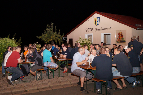 Am 10. September 2016 lud die FFW Geschwand die Feuerwehrkameraden des Patenvereins Wolfsberg zu einem gemütlichen Beisammensein ein. Auch das jährliche "Aktiven-Grillen" der FFW Geschwand wurde im Rahmen dieses Kameradschaftsabends abgehalten. Ebenfalls eingeladen wurde alle Ehrenmitglieder. Als Dankeschön für die vielen ehrenamtlich geleisten Übungs- und Einsatzstunden bewirteten die Mitglieder des Vorstands der FFW Geschwand die Kameradinnen und Kameraden mit herzhaften Speißen und gut gekühlten Getränken. Bei traumhaftem Spätsommerwetter mit hochsommerlichen Temperaturen um die 25°C wurde auf dem Platz vor dem Feuerwehrhaus bis spät in die Nacht gefeiert.,