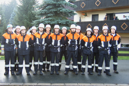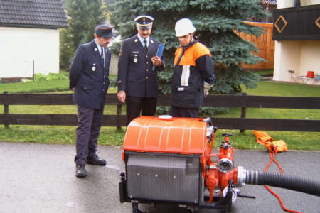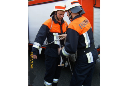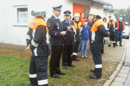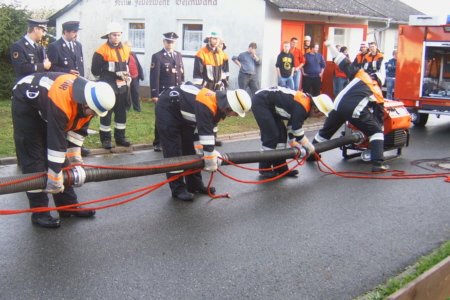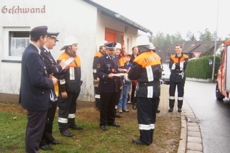 | Am 21. Oktober 2006 legten 14 Feuerwehrkameraden der FFW Geschwand in 5 Leistungsstufen mit Erfolg die Prüfung fürs Leistungsabzeichen ab. Unter den Augen der Schiedsrichter Reiner Disselberger (KBI) aus Neunkirchen, Wolfgang Baumann aus Walkersbrunn und unserem KBM Simon Hofmann aus Bieberbach legten die Kameraden eine hervorragende Prüfung ab. Eine so ordentliche, saubere, ruhige und materialschonende Leistung habe ich in diesem Jahr noch nicht gesehen, lobte KBI Reiner Disselberger die Prüflinge. Im Anschluss an die Abnahme wurde dann die erfolgreich abgelegte Prüfung mit den restlichen Aktiven Kameraden und den Ehrenmitgliedern gebührend gefeiert. |