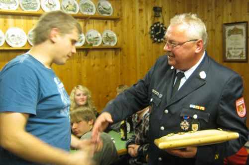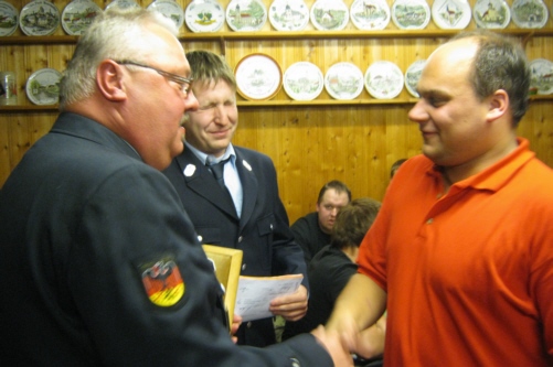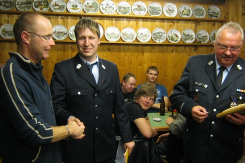 Am 16. Oktober 2010 legten 16 Feuerwehrkameraden und eine Kameradin der FFW Geschwand in 5 Leistungsstufen mit Erfolg die Prüfung fürs Leistungsabzeichen ab. Unter den Augen der Schiedsrichter Michael Langenhan (KBM aus Igensdorf, Ludwig Baumann (KBM) aus Walkersbrunn und unserem KBM Marc Maier aus Wolfsberg legten die Kameradin und Kameraden eine hervorragende Prüfung ab. Im Anschluss an die Abnahme wurde dann die erfolgreich abgelegte Prüfung mit allen aktiven Kameraden und den Ehrenmitgliedern gebührend gefeiert. |