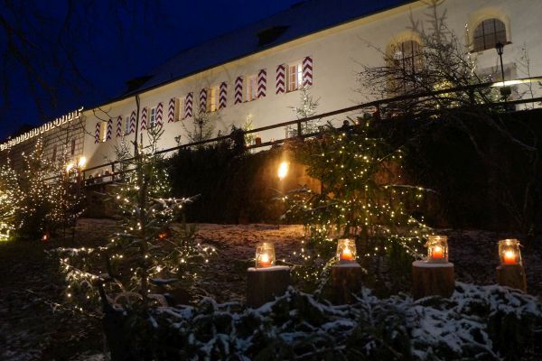 | Sehr hohe Beteiligung beim FSV & OGV-Ausflug am 02. Dezember 2017 zum Weihnachtsmarkt nach Schloss Guteneck. Bei trockenem Wetter brachen um 15:00 Uhr 50 Mitglieder des FSV- und des OGV-Geschwand mit dem Bus in die Oberpfalz auf. Dort besuchten sie den historischen und romantischen Weihnachtsmarkt auf Schloss Guteneck im Landkreis Schwandorf. Nach einigen Tassen Glühwein, Bratenwürsten und vielen vorweihnachtlichen Eindrücken machten sich die Ausflügler um 21:30 Uhr wieder auf den Heimweg. |
