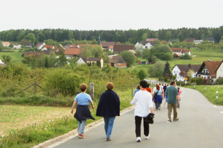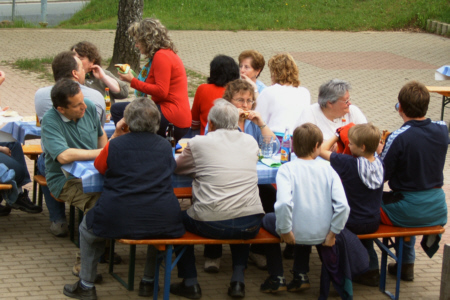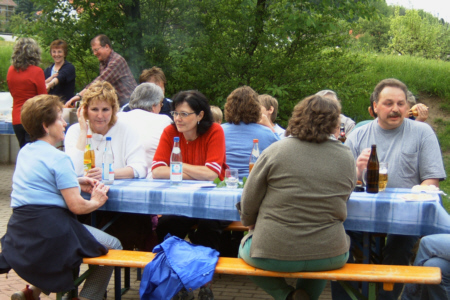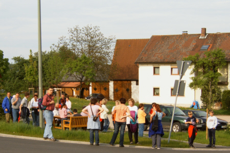 | Am 21. Mai 2005 veranstaltete der Fränkische Schweiz Verein Geschwand seine traditionelle Frühlingswanderung mit anschließendem Dorffest. Bei herrlichem Wetter nahmen 43 Naturfreunde an der Wanderung teil. Anschließend traf man sich bei Wein und Bier und Gegrilltem zum ersten Mal auf dem Schulhof zum gemütlichen Beisammensein. |
