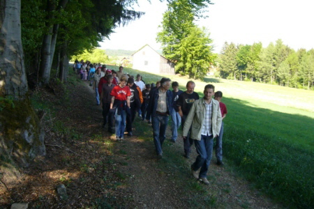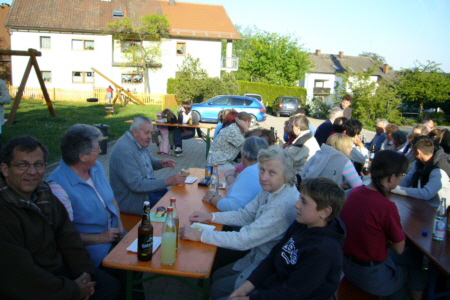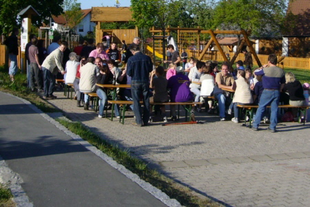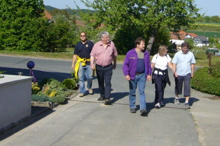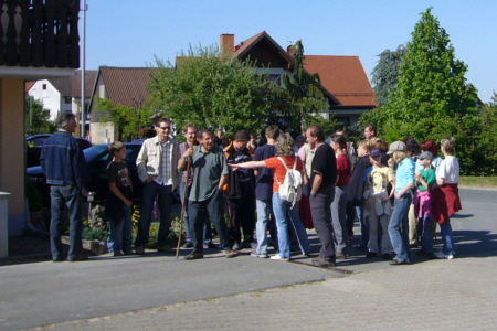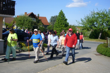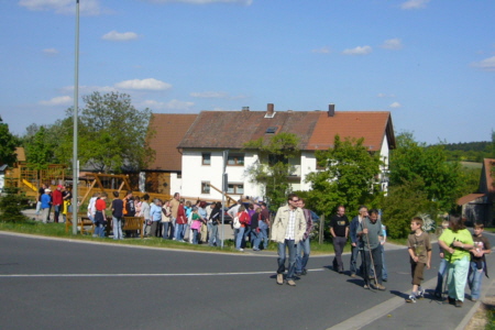 | Am 01. Mai 2007 veranstaltete der Fränkische Schweiz Verein Geschwand seine traditionelle Frühlingswanderung mit anschließendem Dorffest. Bei sehr schönen und sonnigen Wetter nahmen 61 Naturfreunde und ein Hund an der Wanderung kreuz und quer durch die Wälder zwischen Geschwand und Affalterthal teil. Anschließend traf man sich bei Wein und Bier und einer Brotzeit auf dem Parkplatz neben dem Kinderspielplatz zum gemütlichen Beisammensein. |