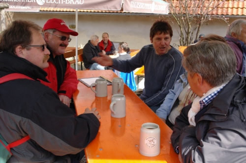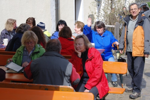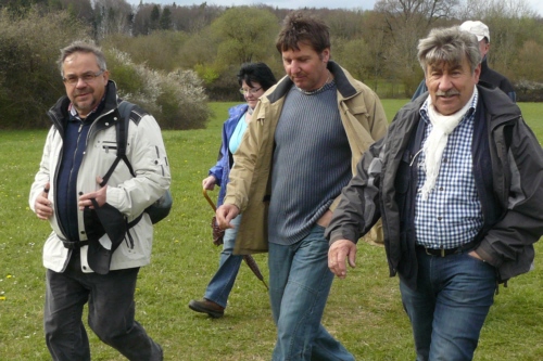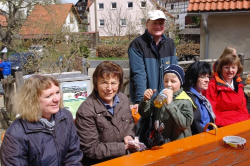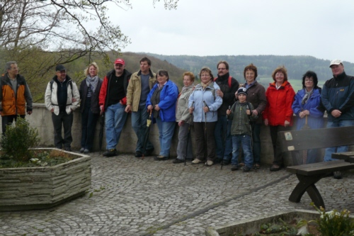 Trotz des kurz vor dem Start niedergegangenen Regenschauers haben sich 22 Wanderfreunde an der Frühlingswanderng des FSV-Geschwand am 21. April 2012 beteiligt. Um 14:00 Uhr brachte der Bus die Wanderfreunde zur Ortsgrenze von Thuisbrunn. Nach nur wenigen Metern erreichten sie dann auch schon den Brauereigasthof Seitz um gleich mal das erste Elch-Bräu zu genießen. Danach ging es gestärkt weiter nach Neusles um dort sofort wieder in der Töpferei und Cafe Kunzmann sich zu Kaffee und Kuchen niederzulassen. Ausgeruht und satt machten sich die Wanderfreunde auf zum letzten Abschnitt der Wanderung. Links vorbei an Gräfenberger Hüll und dem Gräfenberger Feuerwehrhaus hinauf zum Gräfenberger Kriegerdenkmal. Ein herrlicher Blick ins Tal entschädigte dann für den anstrengenden Aufstieg. Auf den letzten Metern, hinunter durch das Hiltpoltsteiner Tor, über den Marktplatz von Gräfenberg zur letzten Station, fing es dann an leicht zu regnen. Doch die Wanderfreunde schafften es, trockenen Fußes zum Brauereigasthof Bremer um zum Abschluss ein Lindenbräu zu genießen. Der Bus von Schmetterling brachte die Wanderfreunde dann wieder nach Hause.