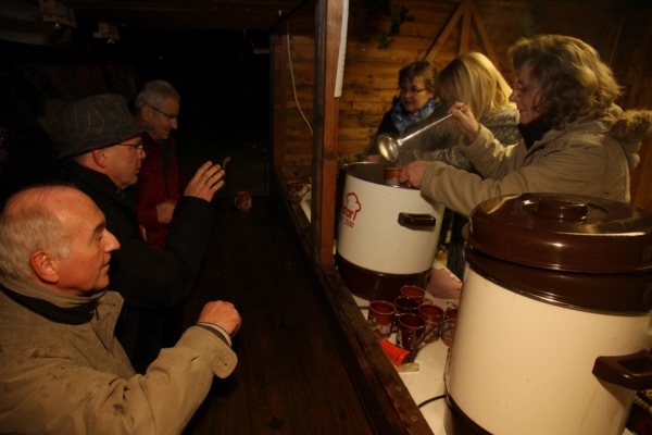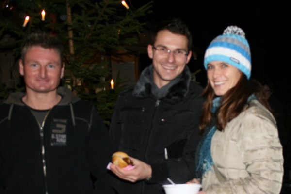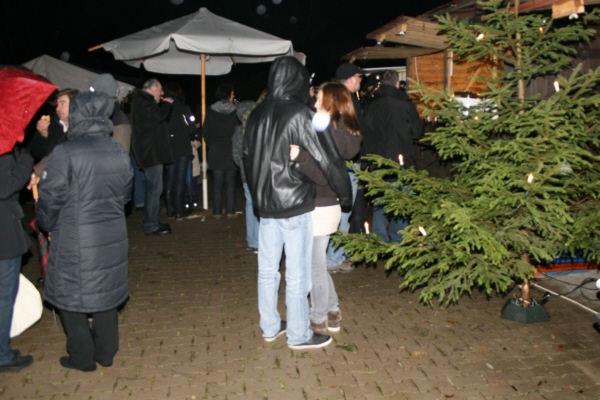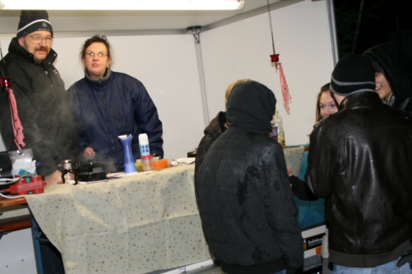 | Zum zweiten Mal bauten die Mitglieder des FSV Geschwand die Buden und Zelte für die traditionelle "Geschwander Weihnacht" am 03. Dezember 2011 auf dem Bürgerplatz auf. Aufgrund der schwindenden Besucherzahlen an den Sonntagen der vergangenen Jahre entschied sich die Vorstandschaft des FSV Geschwand in diesem Jahr die "Geschwander Weihnacht" nur noch am Samstag auszurichten. Bei windigem und regnerischem Wetter und Temperaturen um 5°C wurden auf dem gut besuchten Weihnachtsmarkt mit Glühwein, selbstgebackenen Lebkuchen und Waffeln, sowie fränkischen Bratwürsten ein paar besinnliche vorweihnachtliche Stunden gefeiert. Ein vorweihnachtliches Konzert mit dem Gesangverein "Gemütlichkeit"