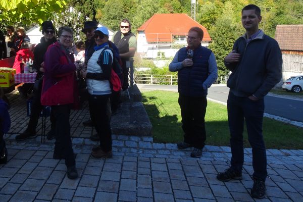 | Die FSV-Herbstwanderung 2025 startete am 3. Oktober bei traumhaftem Herbstwetter mit angenehmen 15 °C um 13:00 Uhr. Insgesamt machten sich fünf Kinder und 24 erwachsene Wanderfreunde von Geschwand an der Kreuzung aus auf den Weg in Richtung Großenohe. Die Strecke führte die FSV-ler zunächst Richtung Sorg. Dörfles blieb rechts des Weges liegen, bevor es weiter in Richtung Wolfsberg ging. Auf der sogenannten Wolfsberger Winterseite wanderte die Gruppe an Marthas Zeltplatz vorbei hinab nach Untertrubach, wo eine wohlverdiente Rast eingelegt wurde. Dort erwarteten die FSV-Verantwortlichen die Wanderfreunde bereits mit gut gekühlten Getränken. Gestärkt führte Wanderwart Adolf Zellmann die Gruppe auf die letzte Etappe nach Großenohe. Am Ziel angekommen, wurden die Teilnehmer mit Kaffee und Kuchen sowie frisch gegrillten Bratwürsten verwöhnt. In gemütlicher Runde ließen die FSV-ler den Nachmittag ausklingen, bevor es schließlich wieder auf den Heimweg ging. |