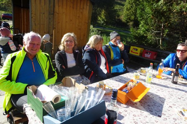 | Die Wanderfreunde bei einer Zwischenstation Richtung Wolfsberg |