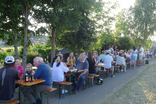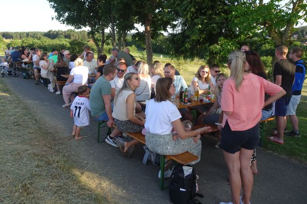 Am 21. Juni 2025 bauten die Mitglieder des FSV Geschwand einige Tische und Bänke auf dem Weg um das „Happ“ neben dem „Venus-Hügel“ auf. Bei angenehmen Temperaturen um die 27 °C verbrachten zahlreiche Geschwander bei kühlen Getränken und leckerem Gegrillten ein paar gemütliche Stunden.