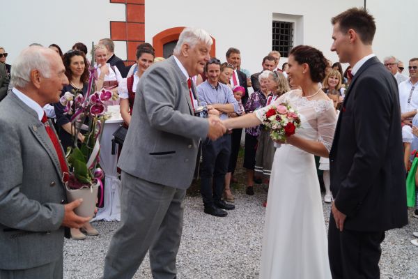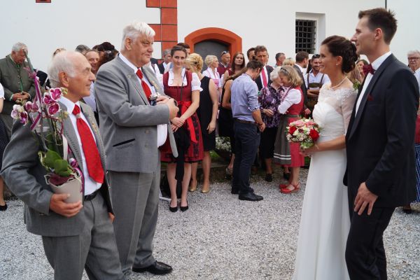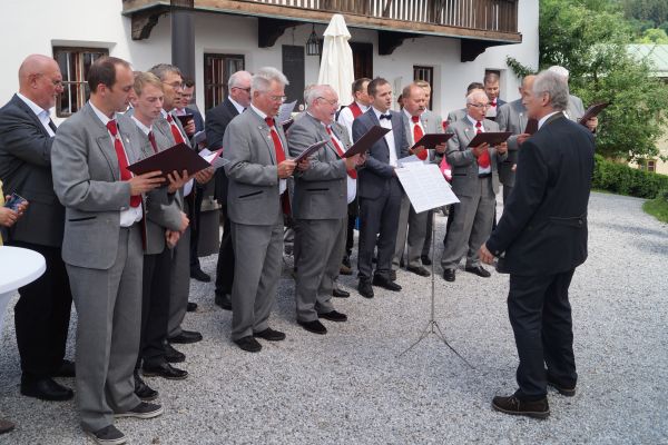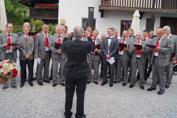 Am 26. Mai 2018 machten sich die Sänger des Gesangverein "Gemütlichkeit" Geschwand zusammen mit ihren Gattinnen und einigen Freunden auf ins Alpbachtal nach Tirol um bei der kirchlichen Trauung ihres Sangesbruders Mario Ebenhack und Sabine Geir den Gottesdienst gesanglich zu umrahmen. Auf der Hinfahrt wurde den Reisenden das traditionelle Feldfrühstück auf dem Rastplatz "Holzkirchen Süd" serviert. Nachdem der Gesangverein "Gemütlichkeit" Geschwand den Trauunggottesdienst mit zwei Liedern umrahmte, unterhielt der "GGG" die auf dem Vorplatz der Kirche "Mariä Himmelfahrt" versammelten Kirchenbesucher bei einem Stehempfang mit ein paar heiteren Lieder bevor sich die Hochzeitsgästen zum Feiern auf eine Bergalm begaben. Im Anschluss flanierten die Ausflügler durch die historische Altstadt von Rattenberg und ließen sich in einem der zahlreichvorhandenen Cafe's nieder um Tiroler Schmankerl zu genießen. Zum Abendessen brachte Chauffeur Josef Dormann die Ausflügler nach Brixlegg. Bevor sich die Ausflügler in der Tanzbar des Kirchenwirtes amüsierten wurde beim Selbigen im Biergarten das Abendessen serviert. Nach dem Frühstück im Hotel Alpenblick in Radfeld begaben sich die Ausfügler noch einmal nach Brixlegg und ließen sich mit der Gondel auf den Reitherkogel bringen. Nach einem kurzen Spaziergang und einer kleinen Stärkung auf dem Berg traten die GGG'ler die Heimreise an. Die Route führte vom Inntal in Tirol über den Achenpass, vorbei an der Kanzlerkehre und dem Achensee zum Tegernsee in Oberbayern. Nach einem kurzen Aufenthalt am Tegernsee mit der Möglichkeit sich zu stärken ging es mit dem Bus weiter über die A9 zurück nach Geschwand.