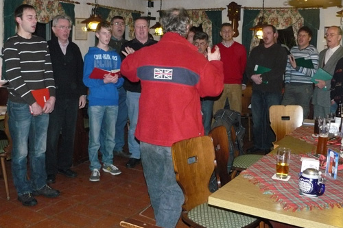 | Am 29. Dezember 2010 hielt der Gesangverein Gemütlichkeit Geschwand seine Jahreshauptversammlung für das abgelaufene Jahr 2010 ab. 1. Vorsitzender Willi Müller begrüßte 23 Mitglieder. Dirigent Ludwig Ebenhack verwies auf 34 Singstunden und 32 Auftritte im abgelaufenem Jahr 2010. Bei den Neuwahlen gab es keine Veränderungen bei der Besetzung der Vorstandschaft. Bei der Prämierung der eifrigsten Sänger ist neben dem Dirigenten Ludwig Ebenhack, Willi Steinbrecher mit den meisten Singstundenbesuchen besonders hervorzuheben.