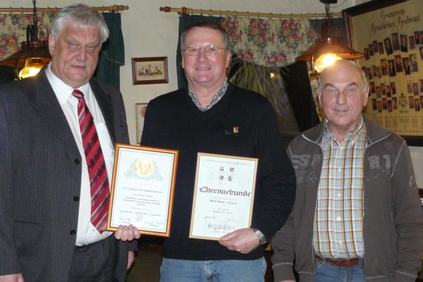 Am 30. Dezember 2011 hielt der Gesangverein Gemütlichkeit Geschwand seine Jahreshauptversammlung für das abgelaufene Jahr 2011 ab. 1. Vorsitzender Willi Müller begrüßte 30 Mitglieder unter denen zum ersten Mal auch 5 weibliche Mitglieder weilten. Dirigent Ludwig Ebenhack verwies auf 32 Singstunden und 24 Auftritte im abgelaufenen Jahr 2011. Bei den Neuwahlen der Vorstandschaft wurden Willi Müller als 1. Vorsitzender, Rudolf Arnold als 2. Vorsitzender, Mario Ebenhack als Kassier und Bernhard Mager als Schriftührer einstimmig in ihren Ämtern bestätigt. Bei der Prämierung der eifrigsten Sänger sind neben dem Dirigenten Ludwig Ebenhack, Gregor Eckert, Rudolf Arnold und Jörg Ebenhack mit den meisten Singstundenbesuchen besonders hervorzuheben. Ehren durfte Willi Müller die Sänger Hans Brendel, Ludwig Ebenhack und Bernd Schmid für 40 Jahre und Theo Eichler für 25 Jahre Singen im Chor.
