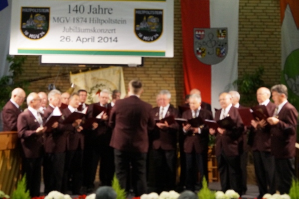 Am 26. April 2014 feierte der Männergesangverein 1874 Hiltpoltstein sein 140-jähriges Bestehen mit einem Jubiläumskonzert. Das dreieinhalbstündige Konzert wurde vom Jubelchor eröffnet. Weitere Teilnehmer waren der Männergesangverein Frankonia Gräfenberg, Gesangverein Cäcilia Kirchehrenbach, Männergesangverein Frohsinn Lilling-Sollenberg, und der Gesangverein Ostemohe 1881. Der Gesangverein "Gemütlichkeit" Geschwand begeisterte das Publikum mit den Liedern "Wir sind die alten Säcke", "Die Morgenwanderung", "Fein sein - beinander bleibn" und "Aber dich, gibts nur einmal für mich". Im Anschluss an das Konzert wurden in der Turnhalle in Hiltpoltstein noch ein paar gemütliche Stunden verbracht.