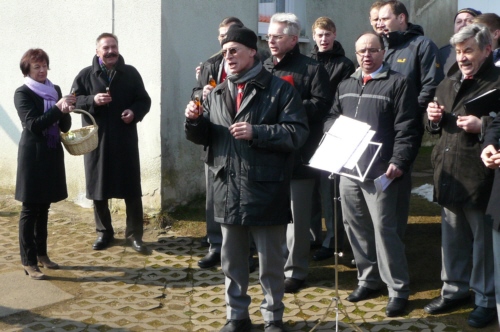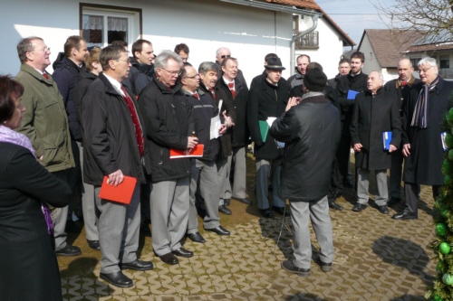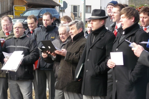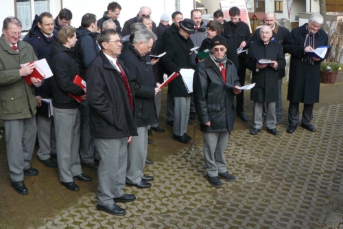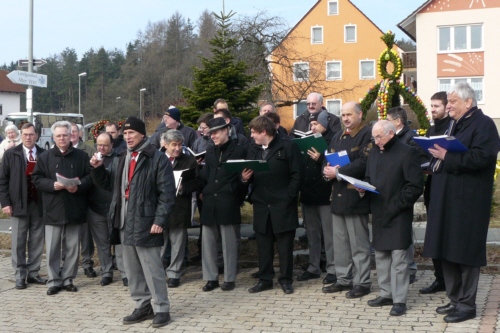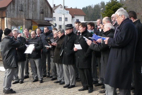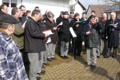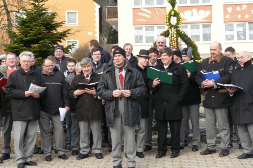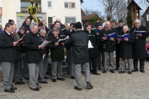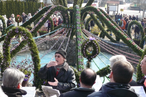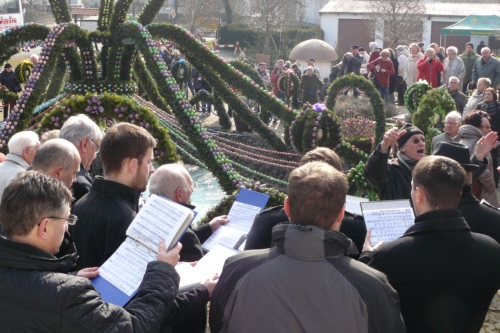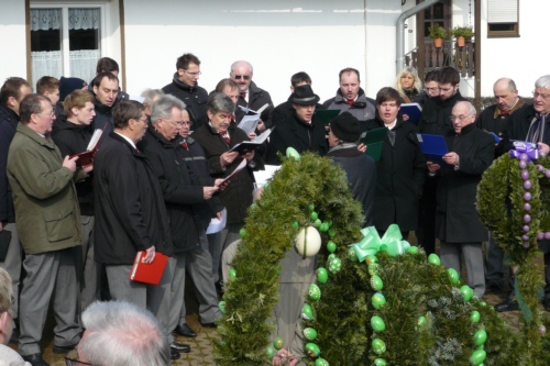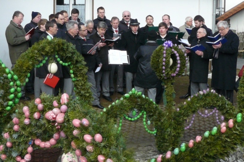 Am Ostersonntag umrahmte der Gesangverein "Gemütlichkeit" Geschwand den Ostergottesdienst mit drei Liedern. Mit den traditionellen kleinen Osterkonzerten an den Osterbrunnen in Geschwand und Bieberbach versuchte der Chor trotz der sehr kühlen Temperaturen um den Gefrierpunkt mit überaus stimmungsvollen Aufführungen den Frühling herbeizusingen.