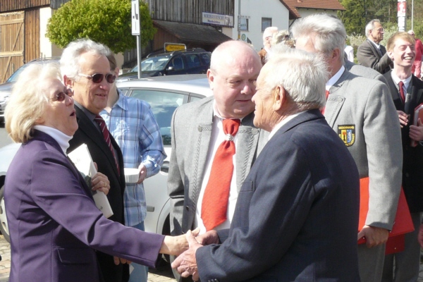 Ostergottesdienst mit drei Liedern. Fast auf dem Tag genau vor fünzig Jahren gaben sich Paula Lodes aus Obertrubach und Andreas Eckert aus Geschwand in der Filialkirche "Mariä Himmelfahrt" in Geschwand das Ja-Wort. Dem Jubelpaar zu Ehren sang der Gesangverein "Gemütlichkeit" Geschwand in der Kirche die beiden Lieder "Liebe ist unendlich" und das "Ave-Glöcklein". Im Rahmen des traditionellen kleinen