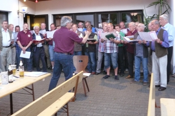 | Viele Sänger befreudeter Chöre (hier Kleingesee) kamen zu Besuch nach Geschwand | |