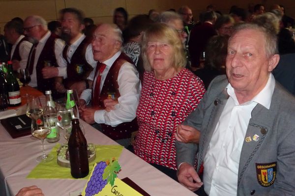 im Rahmen eines Weinfestes. In der entsprechend der Jahreszeit liebevoll geschmückten Turnhalle der Volkschule waren neben den Gastgebern noch der Gesangverein Harmonie Muggendorf, der Gesangverein Cäcilia Heroldsbach, der Gesangverein Liederkranz Leutenbach, der Männerchor Eintracht Reuth und natürlich der Gesangverein "Gemütlichkeit" Geschwand eingeladen. Nach dem offiziellen Teil feierten die Sängerinnen und Sänger mit den Gästen bei Wein und Gesang ein paar gemütliche Stunden in froher Runde.