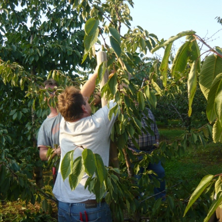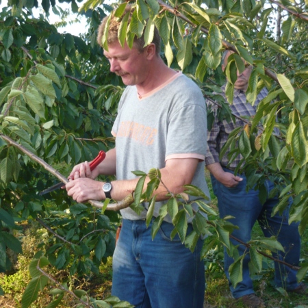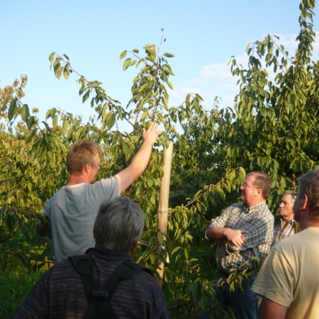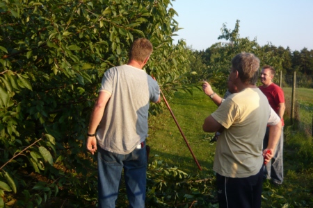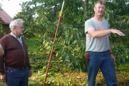 | Am 11. September 2009 hielt der Obst- und Gartenbauverein Geschwand einen Obstbaumschnittkurs in der Kirschenanlage in Geschwand ab. Bei herrlichem Frühherbstwetter erklärte Christoph Vogel den 15 Teilnehmer den Sinn und Zweck des Zurückschneidens der Äste und Triebe an Obstbäumen. |