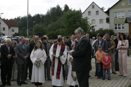 von links: Daniela Singer, Hans Albert, Gregor Schmitt, Eduard Nöth, Pfarrer Werner Wolf, Walter Hofmann, Cäcilie Müller, Manfred Thümler, Willi Müller, Hartmut Koschyk, Reinhard Konrad, Anja Müller, Torsten Pfeiffer, Doris Pfeiffer, Fritz Buchfelder