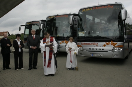 Am 15. August 2006 feierte Geschwand ein bisher nie da gewesenes Patronatsfest.  53 Jahre nach dem die Kirche in Geschwand geweiht wurde, waren es an diesem Tag gleich vier Objekte, die die Weihe der Kirche empfingen. Der Feiertag "Mariä Himmelfahrt" begann mit einem Gottesdienst, der von H. H. Pfarrer Werner Wolf zelebriert  und von der Singgruppe des FSV Geschwand umrahmt wurde. Im Anschluss am Gottesdienst weihte  Pfarrer Werner Wolf den neu erbauten und wunderschön gelegenen und gelungenen Kinderspielplatz in der Ortsmitte von Geschwand ein. Im Anschluss daran begaben sich die vielen Besucher zum neu gebauten Bürgerplatz von Geschwand. Der wunderschön gestaltete Platz im Norden der ehemaligen Schule wurde mit großzügiger Unterstützung von Schmetterling-Reisen angelegt, gepflastert und bepflanzt. Nur wenige Meter davon steht das neue Bürogebäude (Service-Center) (ehem. Schule) von Schmetterling-Reisen. Auch hier war Pfarrer Werner Wolf wieder gefragt, und gab dem Gebäude den Segen der Kirche. Zu guter Letzt erbaten die Fahrer von Schmetterling-Reisen für ihre neu angeschafften Busse den Segen und eine allzeit unfallfreie Fahrt. Nach den offiziellen Zeremonien ging man dazu über, das alles neu Erbaute, Gekaufte, Geschaffene in einem gemütlichen Rahmen gebührend in den Bushallen von Schmetterling-Reisen zu feiern. Schmetterling-Reisen nutzte den Feiertag zu einem Tag der offenen Tür. Da konnten die Besucher das neue Service-Center und die Büroräume von Schmetterling-Reisen, sowie die neuen Busse besichtigen. Auch an ein Rahmenprogramm für die Kleinen wurde gedacht.