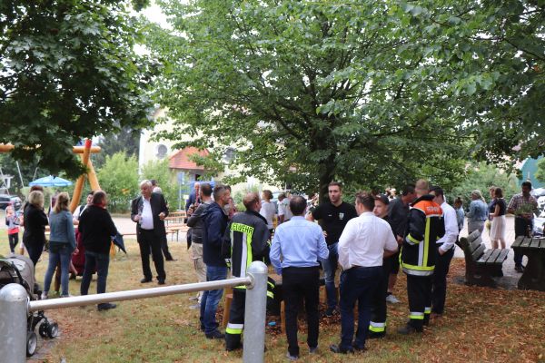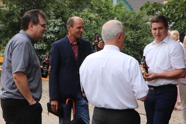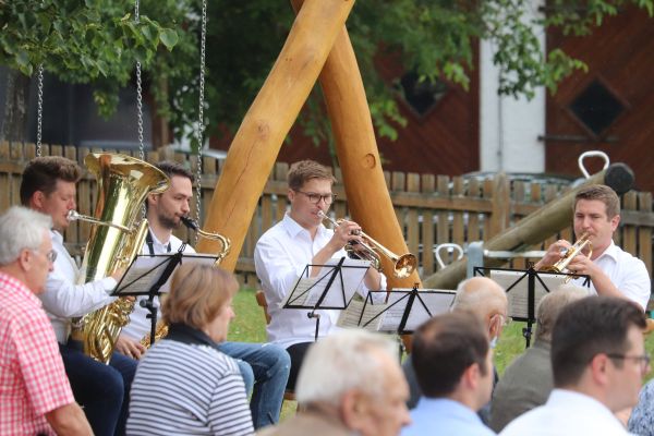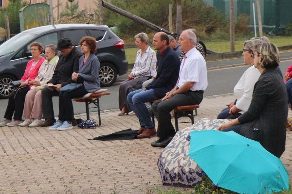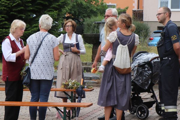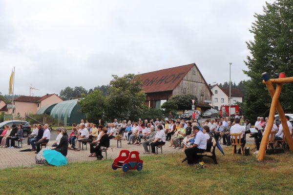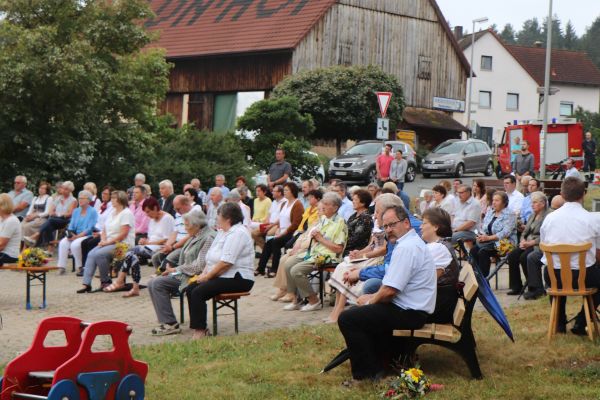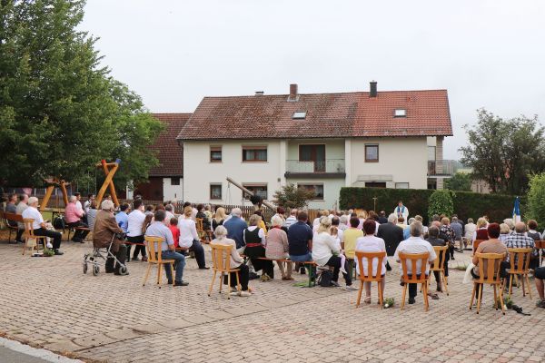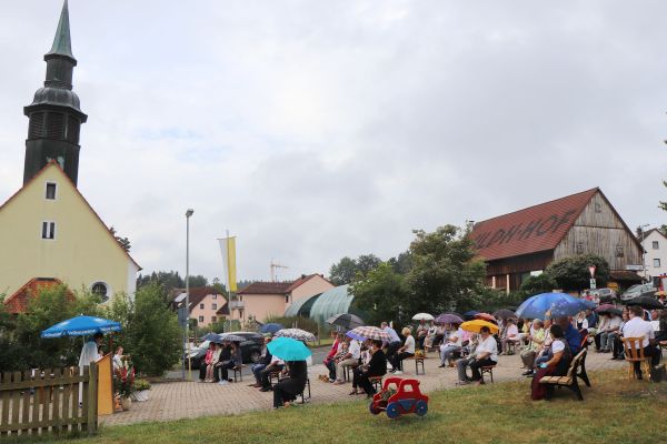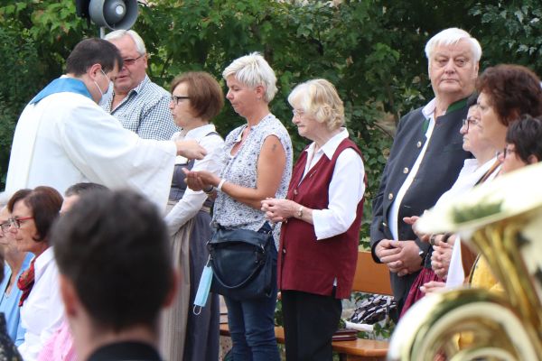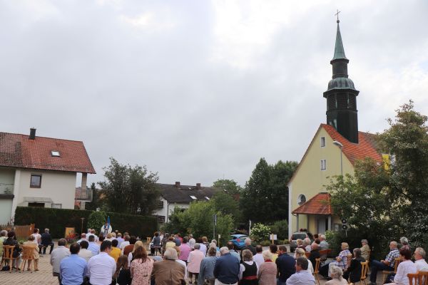 | Festgottesdienst im Freien - vor der Kirche "Mariä Himmelfahrt" in Geschwand |