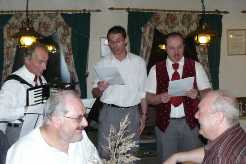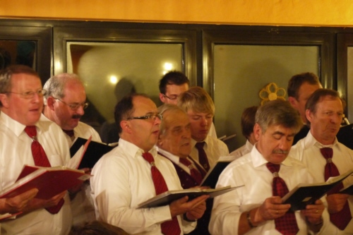 | Eine eigens zum 50. Geburtstag von Bernhard Arnold umgetextete Version des aus Irland stammenden Volksliedes "Lang ist es her" von Thomas Haynes Bayla aus dem 19. Jahrhundert als Ständchen vom Gesangverein "Gemütlichkeit" Geschwand. |