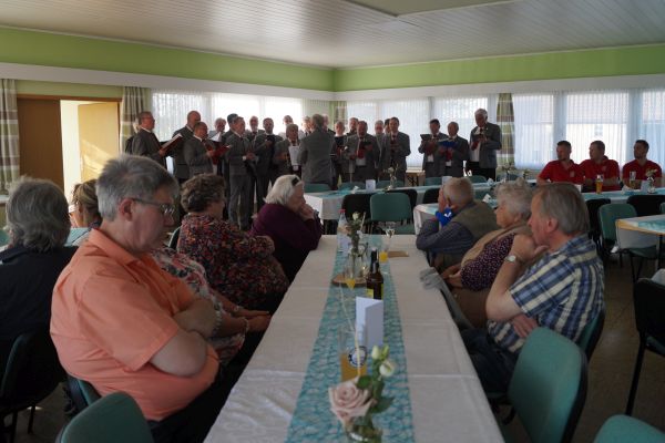 | Der Gesangverein "Gemütlichkeit" Geschwand gatulierte seinem Ehrenmitglied mit einem Ständchen |